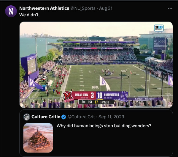 The storyline of the game was not Northwestern’s ugly win against Miami, but rather the beautiful setup of the school’s temporary stadium: