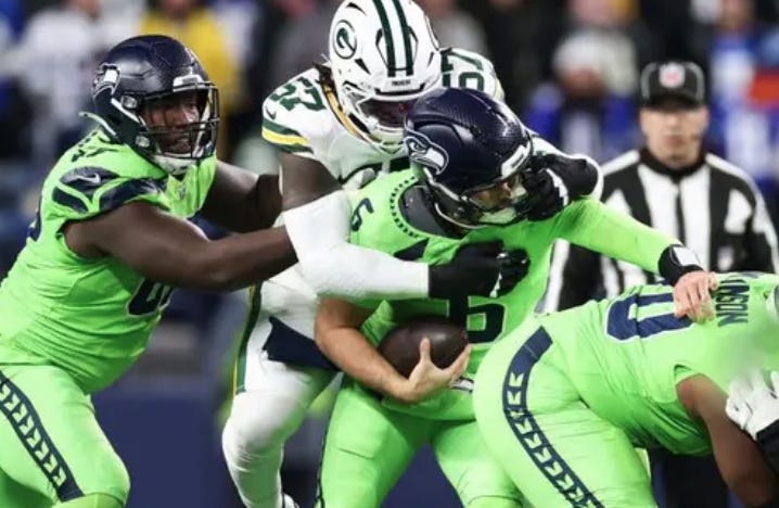 Unfortunately, the Hawks don’t have enough talent on defense. Mike McDonald did a nice job in the second half to rally the defense, but it was too little, too late. Rookie Tyrice Knight had his worst game as a professional after four great weeks in a row. Riq Woolen is out here getting eviscerated on social media for his lack of effort and rookie Byron Murphy looks pretty average after a promising start (ranking 87th among DL in PFF grade). The Hawks need to find playmakers and depth on defense to compete with the likes of Green Bay. They simply don’t have it right now.
