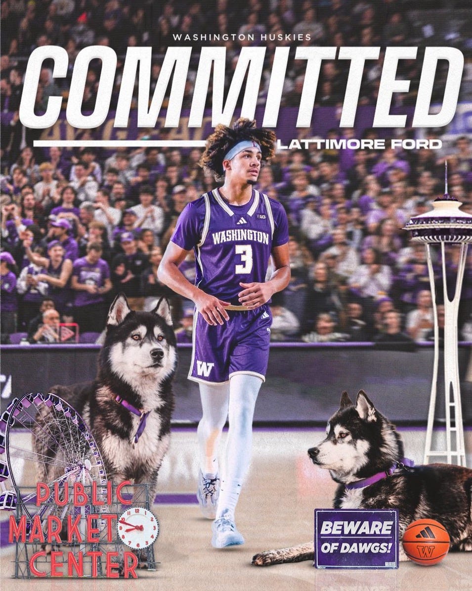 Local 2026 standout Lattimore Ford commits to Washington Huskies basketball, giving Danny Sprinkle his first recruit of the cycle.