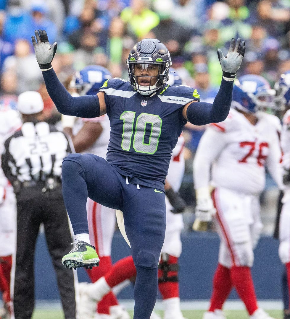 The inside linebackers are new and thankfully not injured anymore. The Hawks signed Tyrel Dodson from Buffalo where he finished 2023 as Pro Football Focus’ top ranked linebacker (above Fred Warner). Dodson only started 10 games last year which may have impacted his rating, but his flexibility caught the eye of the Seahawks front office. I watched him covering running backs and tight ends at Seahawks practice on Tuesday and he looked free and easy in that role. Both Dodson and Baker, signed from Miami, will be essential to this Seahawks defense. When you are watching games at home, it will appear that those two are the only players in the “second line” of defense when the ball is snapped. While the Hawks are technically running a 3-4, the outside backers will be closer to the line of scrimmage leaving Baker and Dodson to cover the middle of the field. Additionally, Seattle will run a lot of nickel coverage, taking advantage of Tre Brown, Devon Witherspoon and Riq Woolen (or even three safeties using Coby Bryant in a hybrid safety/corner role). In some ways, Baker and Dodson are the most important players on the Seahawks defense. If they perform, Seattle’s D can be a top 10 unit in the league. If they struggle, Ryan Grubb might need to come up with some more deep shots to DK Metcalf.