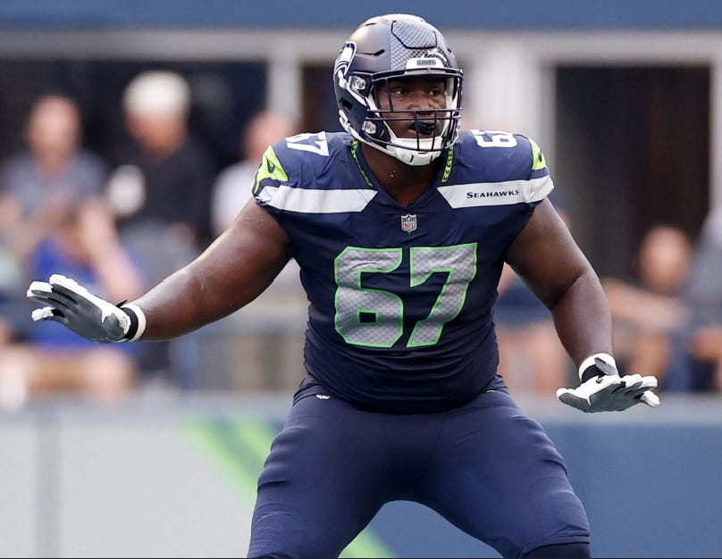 The guard position is fascinating. It feels like decades since the Seahawks had a good guard on their offensive line as they continued to plug in late-round draft picks and undrafted free agents. While the approach hasn’t changed much, the hopes are higher in Seattle despite losing both starters from 2023. Damien Lewis signed a four-year, $53 million deal that included a $15 signing bonus with the Carolina Panthers while Phil Haynes went on injured reserve and hasn’t been heard from since. For anyone that watched the Seahawks the last couple years, there was no scenario where matching a deal for Lewis made sense. That is a lot of money for a guy coming off his second lowest PFF grade in his career. Way too much money actually.