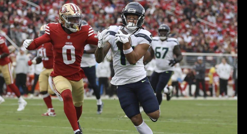 The Cardinals may not have an issue on the offensive line as glaring as the Seahawks, but they have trouble running the ball at times. In particular, right tackle Kelvin Beachum is struggling. In the last four games, his run block grades are 51.7, 56.4, 53.1 and 47.7, which puts him in Anthony Bradford territory. While the Cards wild on the Bears two weeks ago, they struggled against Miami and were ok against the Jets. With a combination of Trey Benson and James Conner, it is certainly possible that the Cards run the ball effectively against the Hawks. However, it is worth watching early to see if Arizona establishes the run or is content to target Marvin Harrison, Jr. and Trey McBride.