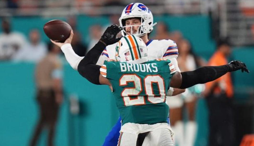 It is hard to not name Jalen Ramsey as the Dolphins playmaker on defense. However, Ramsey is ranked 108th in the NFL in coverage, according to Pro Football Focus. At the same time, Ramsey has allowed two catches on two targets in 2024 on just 43 pass plays. For comparison, Woolen and Witherspoon have each been in on 84 pass plays. In 2023, Ramsey was 89th in coverage but quarterbacks only had a 52.9 passer rating against him. This is a long way of saying to not discount Jalen Ramsey and that stats can be misleading. He is the guy to watch and the one I worry will pull down a huge interception in this game.