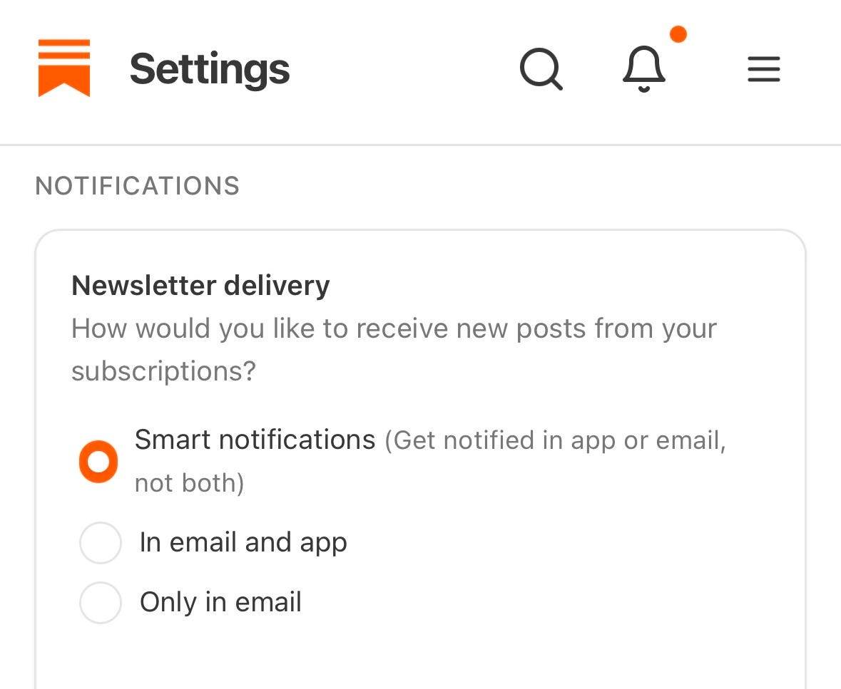 As a reminder, you can control whether you receive newsletters and links to chats from us solely via email, solely via the Substack app, or both. You can do this by going into your Substack account settings and toggling your preferences. It should look like this: