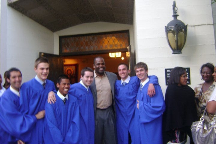Perhaps, more importantly, McMillan is a nice guy. His daughter was a classmate of mine and when we graduated from Seattle Prep, Nate was so game to take a picture with me and some other of his fan boys. Proof below: