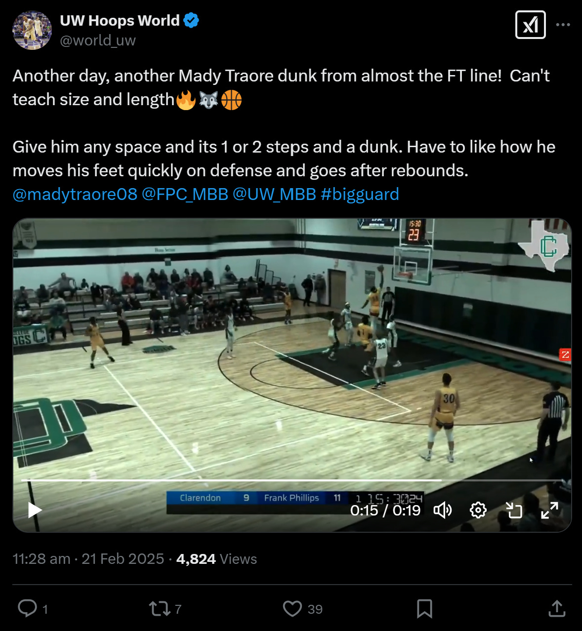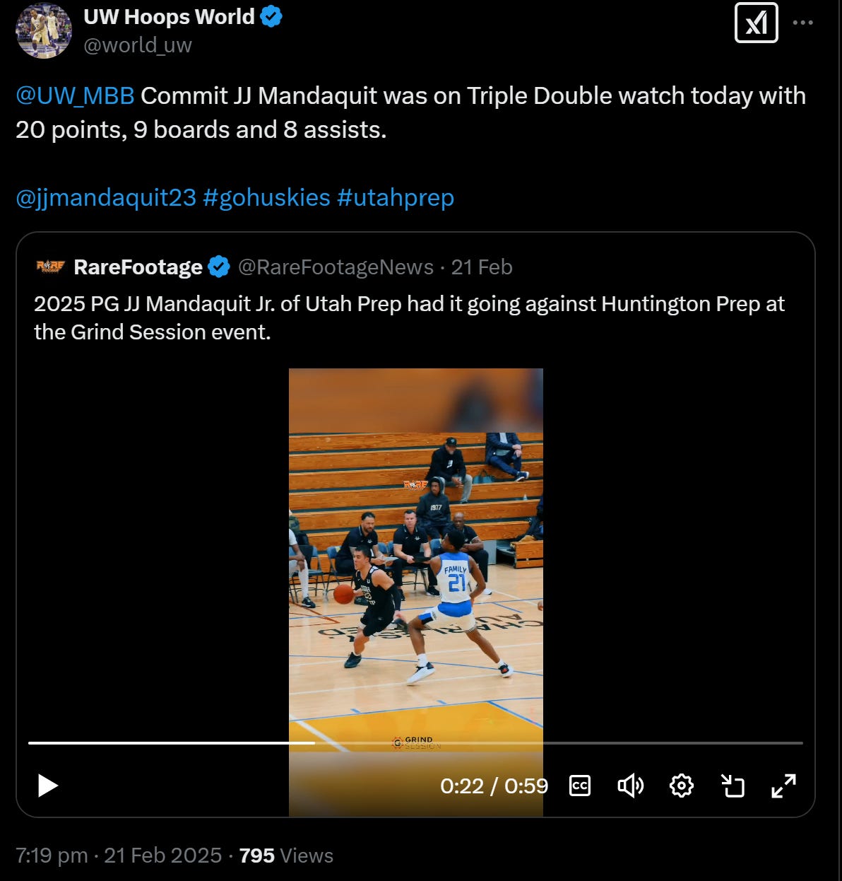 Shout out to UW Hoops World on X for great updates on Husky recruits.