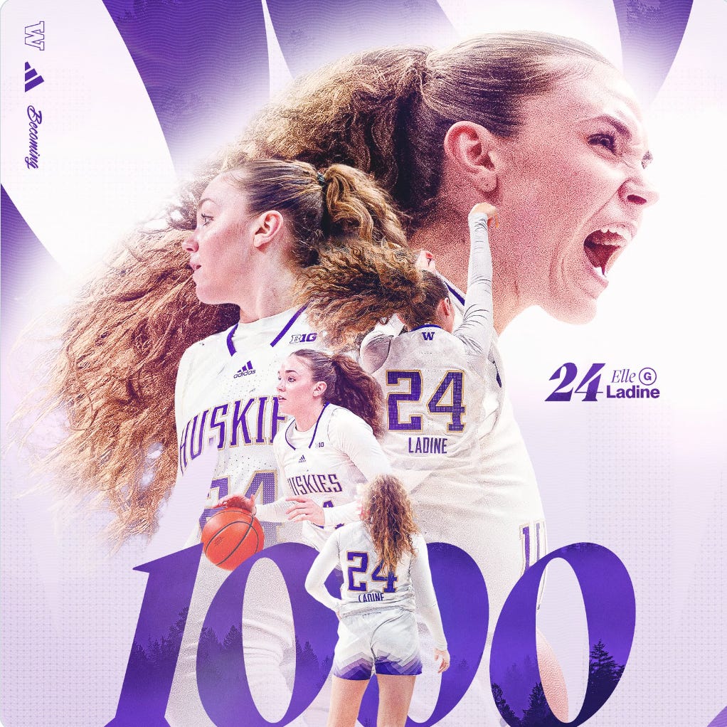 Wait For It Seattle podcast guest Elle Ladine is back as Player of the Week. In two games this week, the junior guard averaged 28 points, 5.5 rebounds, and 4.5 assists per contest. That is ridiculously good.