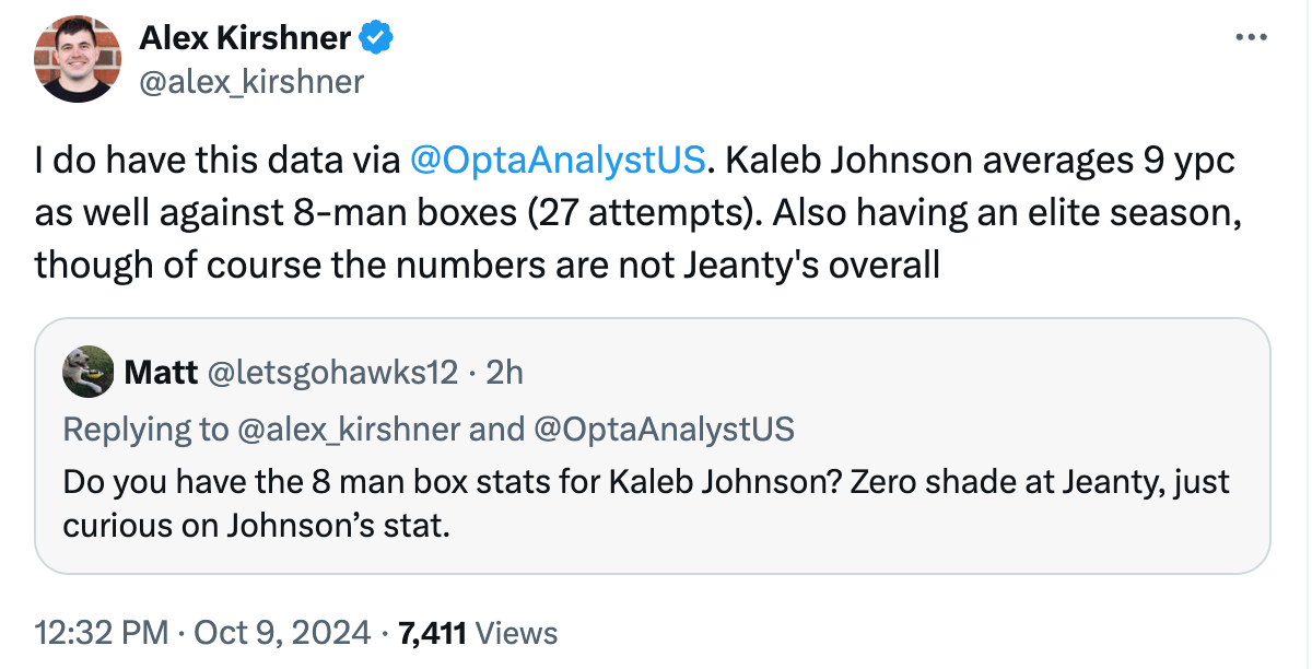 In five games, Kaleb Johnson’s longest rush per game is 45 yards. That’s just about half a football field and makes things much easier for an offense that has no passing game. Washington has also allowed rushes of 22 yards or more in four of its six games. If the Huskies can prevent Johnson from breaking free for a big run, it will force Iowa to have to work for its points and potentially put them into third down situations.